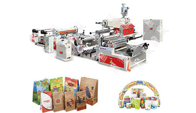 擠出涂布復(fù)合機(jī)、分切復(fù)卷機(jī)、切紙機(jī)和切紙機(jī),廣泛應(yīng)用于紙張(紙杯、紙袋、米包紙涂層、無(wú)菌包裝)、織物、箔、無(wú)紡布、PP編織等材料。